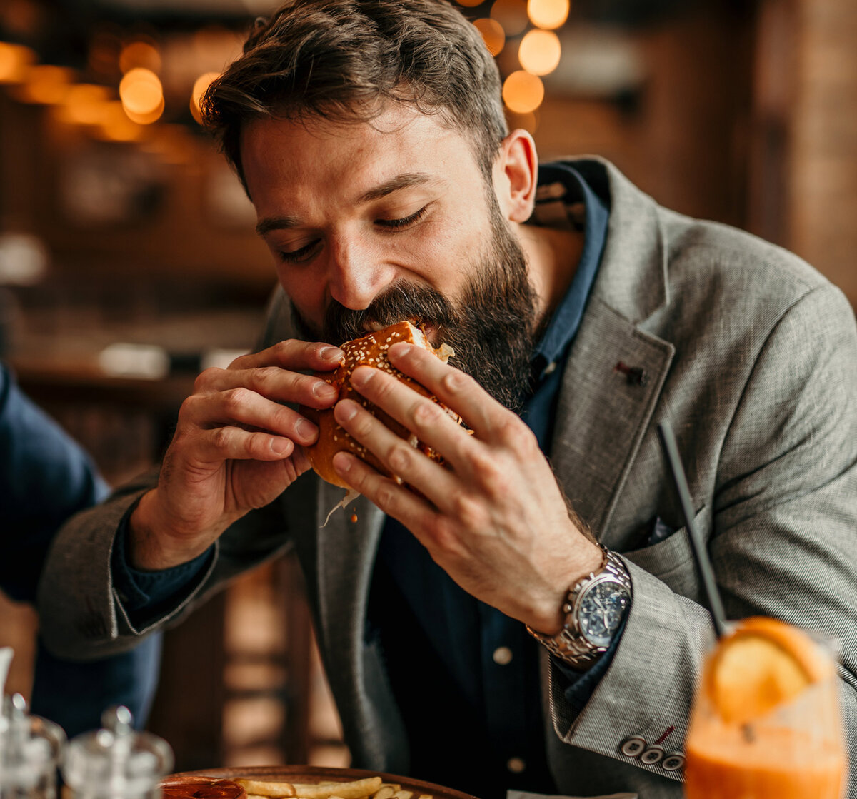 man eating a burger at a restaurantImage Slide2, Link to Larger Image,