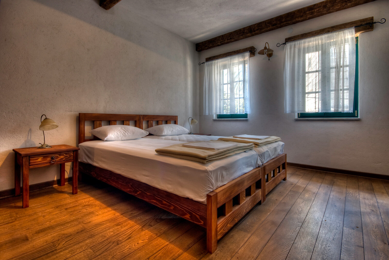 a bed with white sheets and wooden furnitureLink to Larger Item Photo, ListItemCarouselImage1
